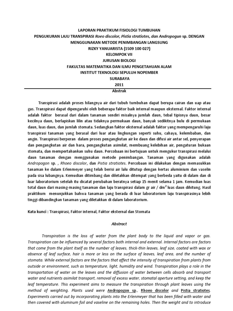 Laporan Praktikum Fisiologi Tumbuhan Transpirasi . Sumber Gambar : www.scribd.com
